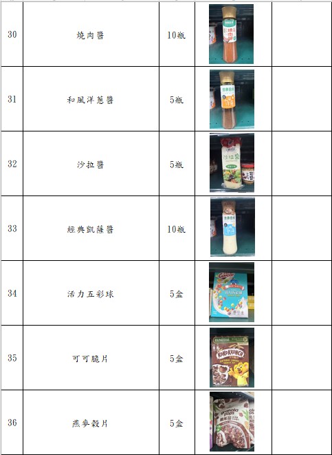 | 24 | 巧克力醬 | 4瓶 | ![]() |